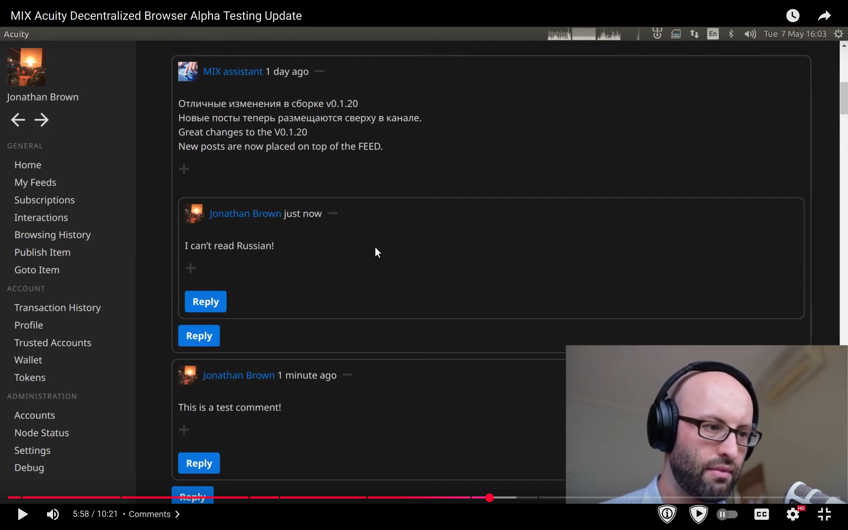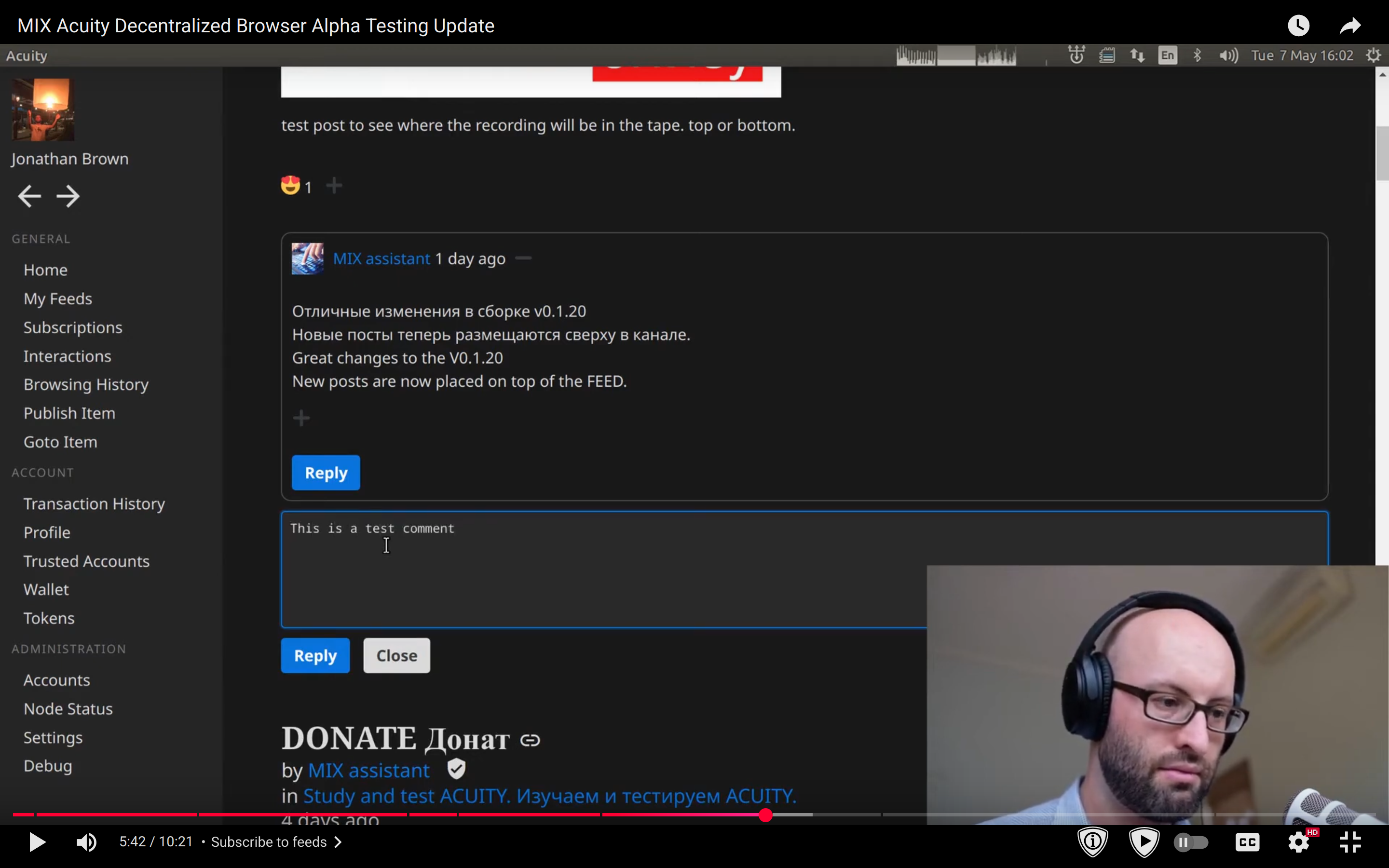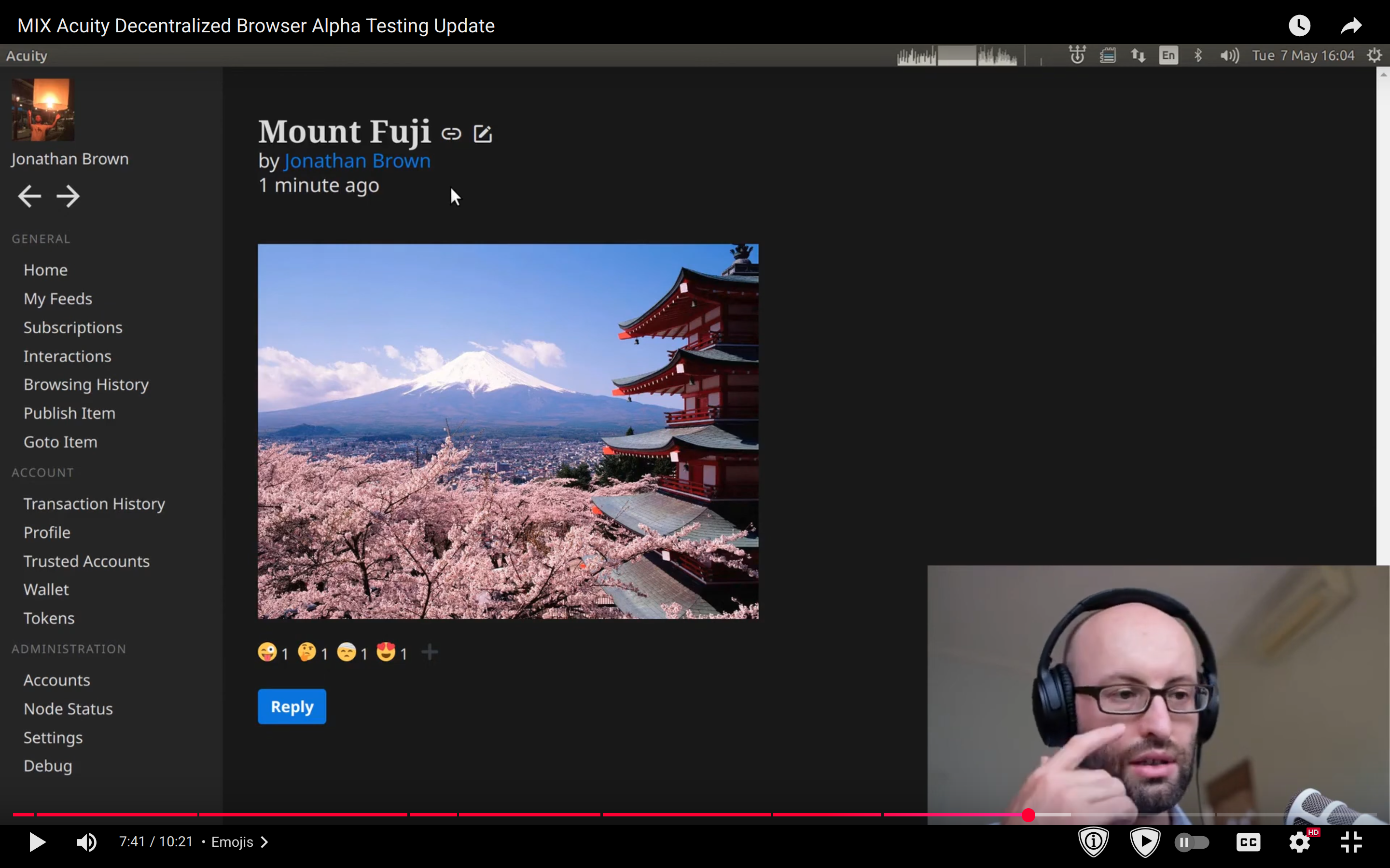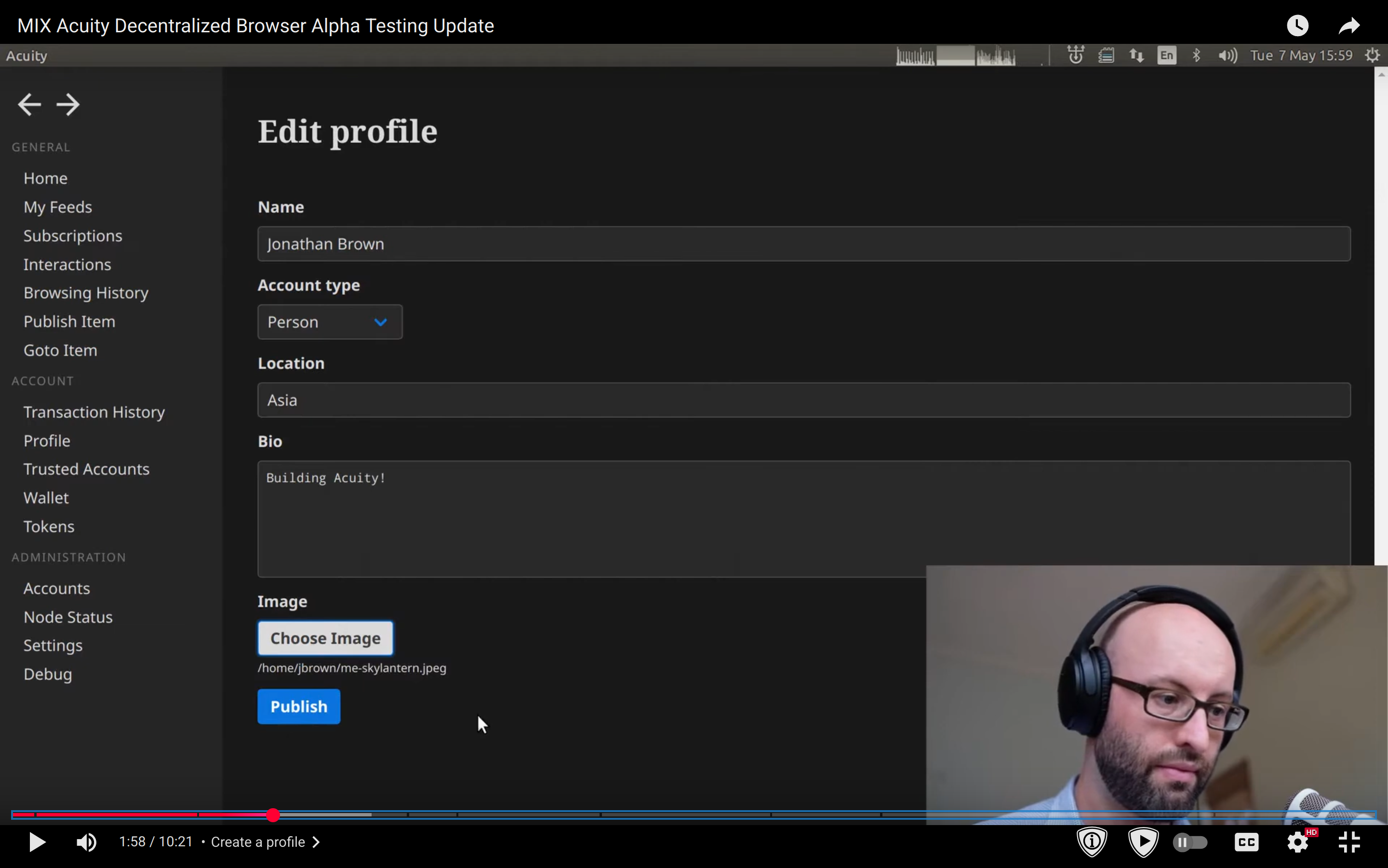 - publishing a video